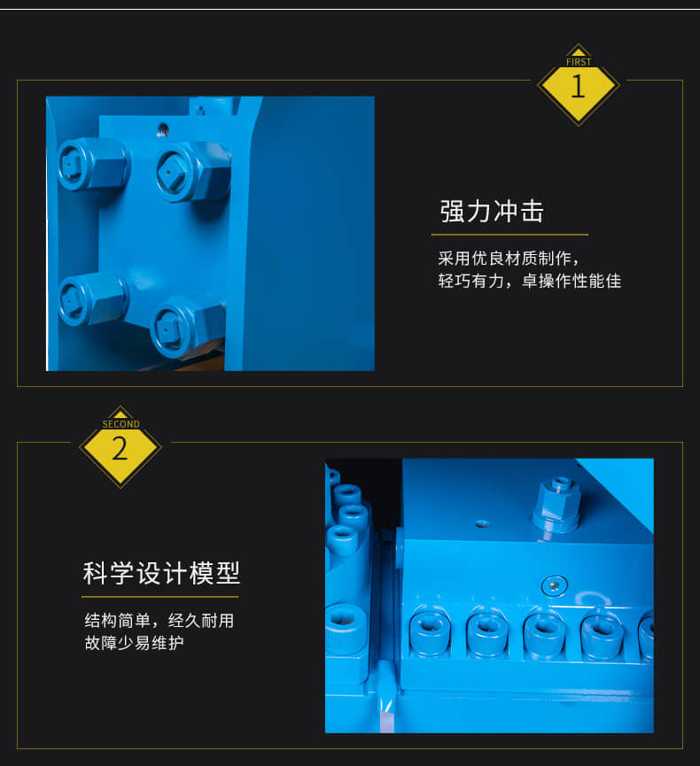 液壓破碎錘簡稱\\\\\\\"破碎錘\\\\\\\"或\\\\\\\"破碎器\\\\\\\",液壓破碎錘的動力來源是挖掘機、裝載機或泵站提供的壓力,它能在工程施工中能更有效的破碎石塊和巖石,提高工作效率。選用液壓破碎錘的原則是根據(jù)挖掘機型號、作業(yè)的環(huán)境來選擇適合的液壓破碎錘。